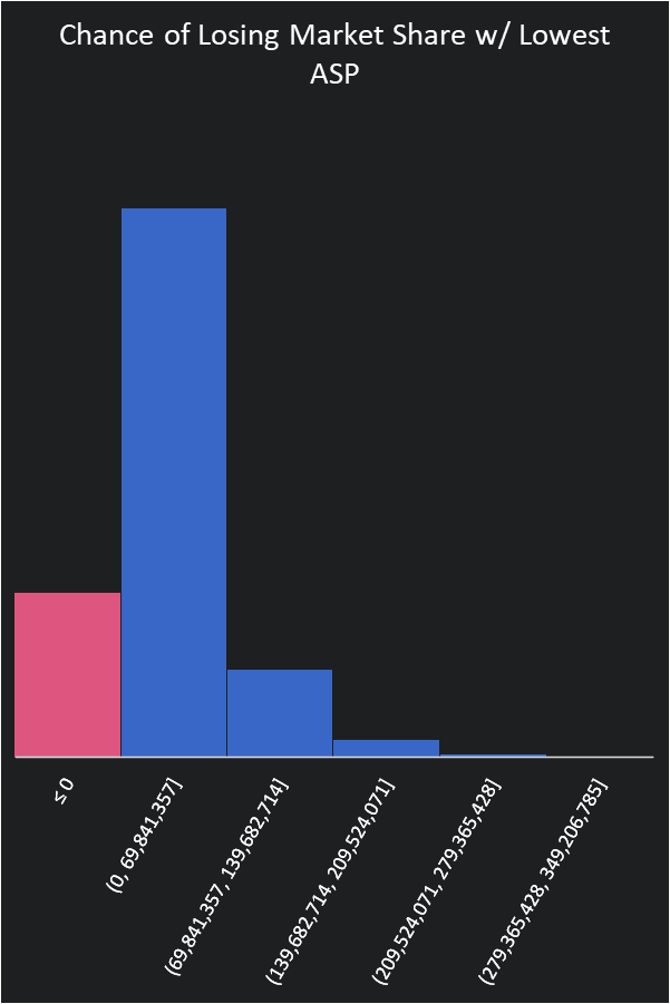 Additionally, our sales department does say that if our competitor beats us in getting to the market first we will have to sell at our lowest ASP. Our market research indicates there is only a 30% chance of that happening based on all of our previous product releases.