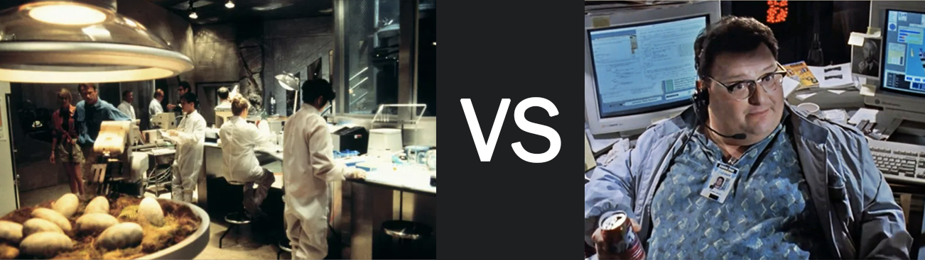 We know this because Nedry says, “You know anybody who can network eight connection machines and debug 2-million lines of code for what I bid for this job?” Which indicates a drive to the lowest-cost developer. There are many causes for this to continue, but one is that computer software development comes with an asymmetry of knowledge. It is hard for the payer to compare two different bids and know if what you are getting is different compared to the other. In this case, Hammond assumed that the cheapest one was as good as any other.