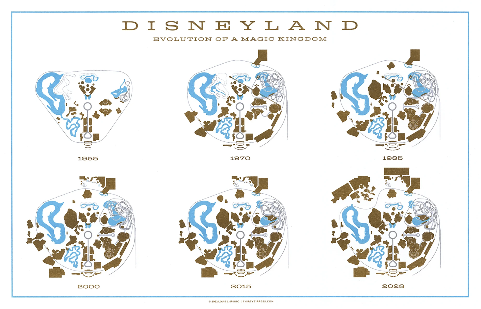 Disneyland was never meant to be done but added to over time. Disneyland started at only 0.25 square miles and has since tripled in size, while Jurassic Park started at 22 square miles. Hammond made the mistake of trying to have everything on day one.